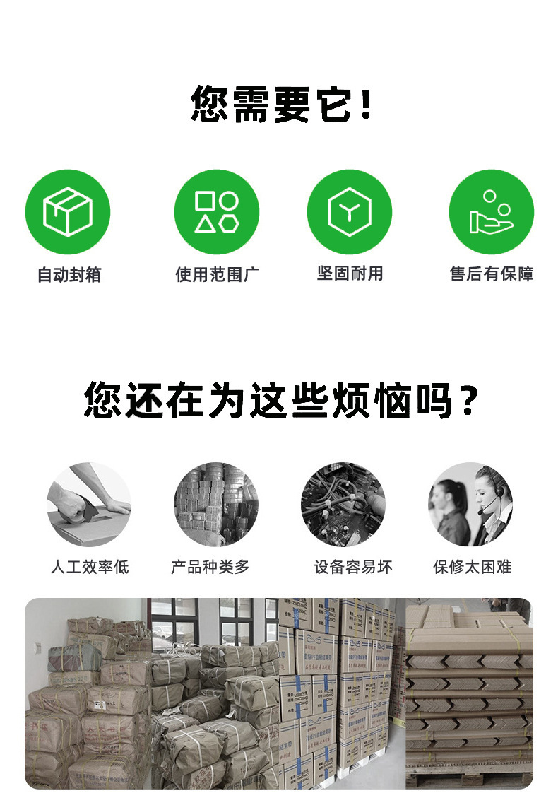 適用多種紙箱類(lèi)型:能夠?qū)Ω鞣N材質(zhì)、形狀和尺寸的紙箱進(jìn)行封箱,只要紙箱的規(guī)格在機(jī)器的設(shè)計(jì)范圍內(nèi),都可以通過(guò)簡(jiǎn)單的調(diào)整來(lái)實(shí)現(xiàn)良好的封箱效果,具有很強(qiáng)的通用性,可滿(mǎn)足不同行業(yè)、不同產(chǎn)品的包裝需求.