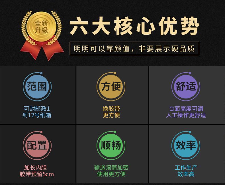 膠帶輸送機構(gòu):主要由多個滾輪和導向桿組成。膠帶從膠帶卷引出后,經(jīng)過這些滾輪和導向桿,被輸送到紙箱封口處。其中一些滾輪是帶有壓力的,用于將膠帶緊密地貼合在紙箱上。在膠帶輸送過程中,會有相應(yīng)的裝置來控制膠帶的輸送長度,以適應(yīng)不同尺寸紙箱的封箱需求。