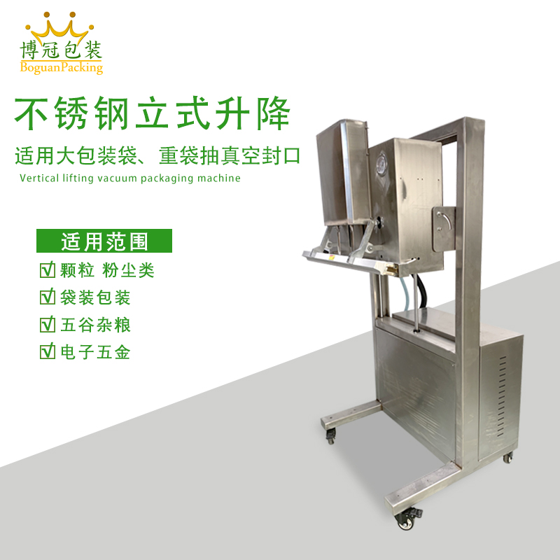 :升降系統是其重要特點之一。通過精準的升降控制,能夠適應不同高度和大小的包裝物品。無論是較高的瓶瓶罐罐,還是較矮的扁平物品,都可以通過調整升降裝置,使封口和抽真空部件處于最佳工作位置。例如,在包裝一些長條形的燈管時,可將升降部件調整到合適高度,確保燈管能完整地被包裝在真空袋中,并且能準確地進行抽真空和封口操作。
