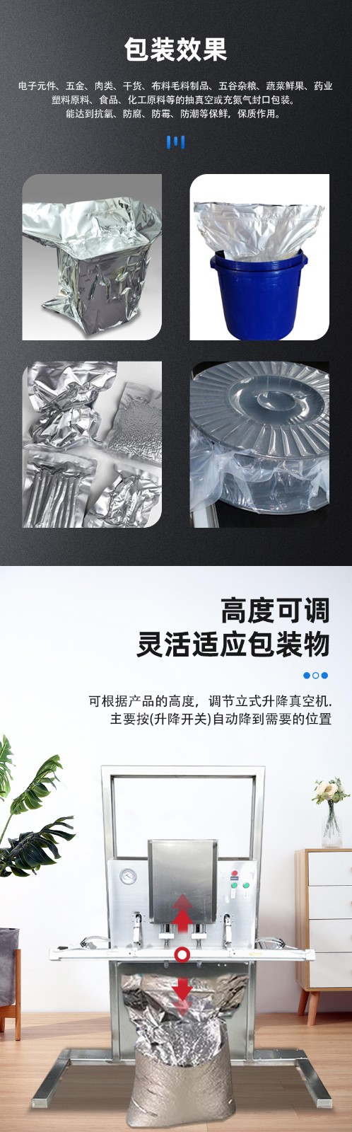 - 包裝效果好:能夠?qū)崿F(xiàn)高效的抽真空和密封功能,使包裝內(nèi)的物品處于真空狀態(tài),有效防止物品受潮、受腐蝕氣體及鹽霧侵蝕,延長物品的保質(zhì)期和使用壽命2。